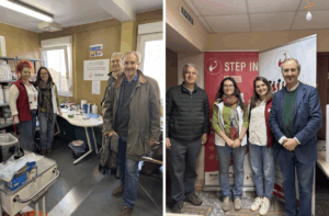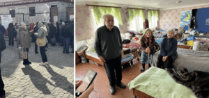 We began the day in a chilly STEP-IN portacabin clinic beside the Kharkiv Caritas centre, arriving as the elderly patients waited patiently in a queue for their week’s appointment. Later that morning we went on to see more elderly folk living in a make-shift dormitory set up in former school classrooms. In both places the patients carried the heavy wartime yoke of weariness and resignation. What is there for them to look forward to? Individuals we spoke to told us that they could not survive without the medicines provided free by STEP-IN.